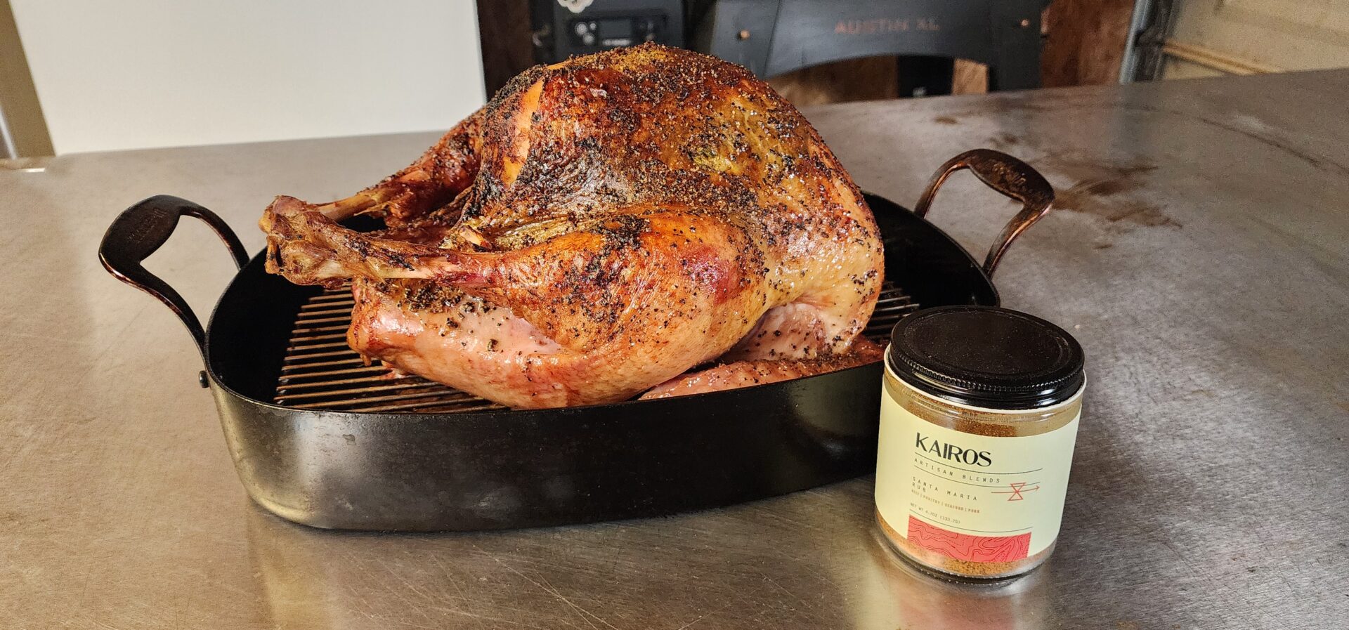 This is another crucial step in adding more flavor to this no brine Thanksgiving Turkey. For this butter, we mix in fresh herbs, salt, lemon zest, garlic, and some Santa Maria style seasoning. If you are unfamiliar with Santa Maria seasoning, it’s basically smoked paprika, garlic, onion, black pepper, salt, and rosemary. A fantastic flavor combo for this turkey. This particular seasoning blend comes from my friends at Kairos Artisan Blends. I have partnered with them on this recipe. But, if buying commercial spice blends isn’t your thing, I will include a recipe for a similar blend below. However, if our relationship means anything to you, you will go buy a jar or two and help fund my extravagant lifestyle of being a homeschool dad who never leaves home (and also get a discount for yourself). Go grab a bottle HERE and make me a happy man.